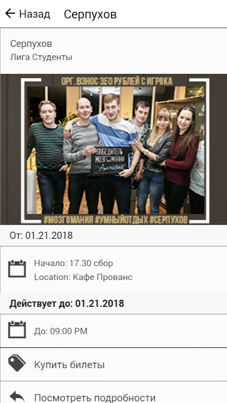 Мы это интеллектуально-развлекательное шоу. Наша задача это объединение любопытных, умных, начитанных жителей города в команду по интересам.