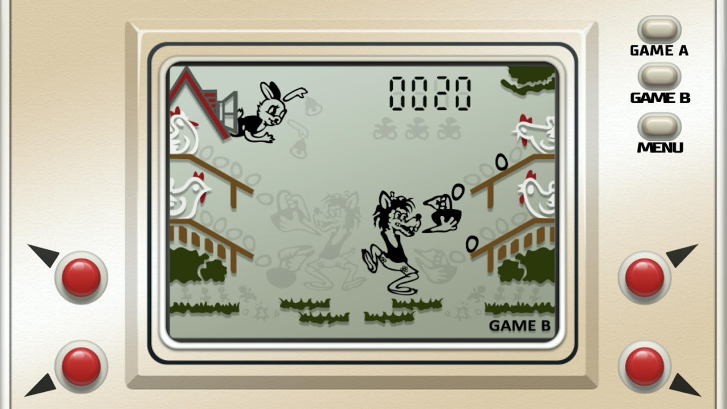 “农场里的狼!”游戏与其原版一样简单易懂:四只鸡栖息在栖木上,下着蛋,蛋会顺着四个倾斜的槽滚落下来。您控制可以四处移动的狼,目标是尽可能多地接住篮子里的鸡蛋。每接住一个鸡蛋就能获得一分。起初,鸡蛋下落缓慢,但游戏节奏逐渐加快。