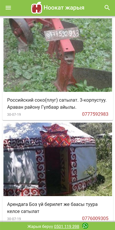 阿莱地区Nookat,为城市和乡村的人们建立了一个移动应用程序发布,以及消息通知和广告现代化的附件。