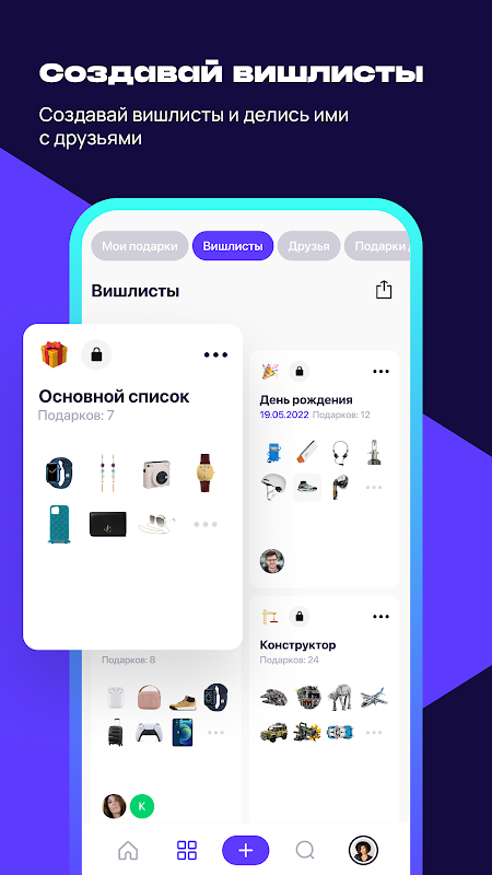 • 查看您朋友的愿望清单。通过我们的服务,您将永远知道该给您所爱的人或同事什么:该应用程序有一个新闻源,您可以在其中看到您朋友的所有新愿望等等!