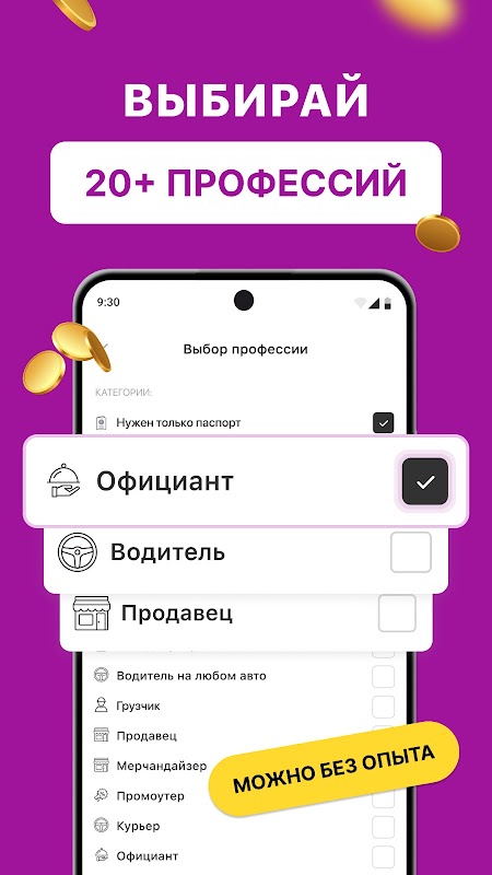 没有面试和其他阶段,只需找到日薪的兼职工作,轮班离你喜欢的地方很近,并开始获得你的第一份收入,工作地点离家很近。您还可以为个体经营者找到兼职工作。