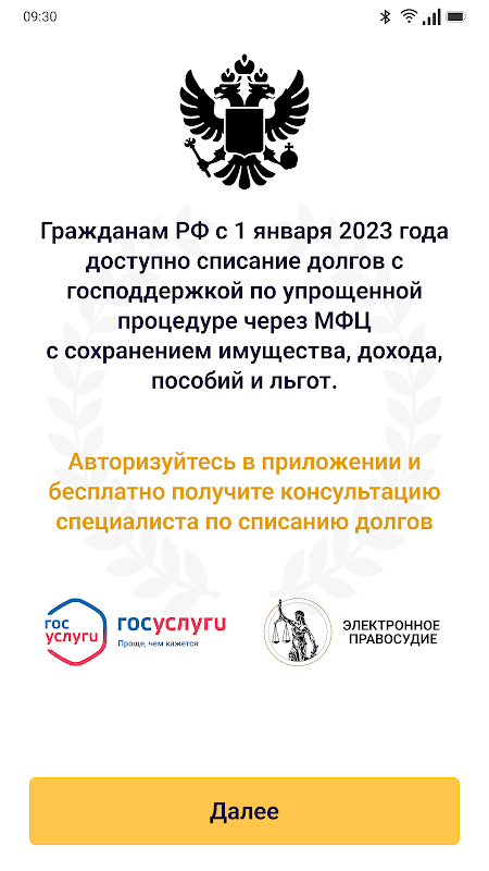下载该应用程序并在家中合法注销您的债务。我们使用国家服务通过仲裁法庭处理破产,通过 MFC 处理庭外破产。