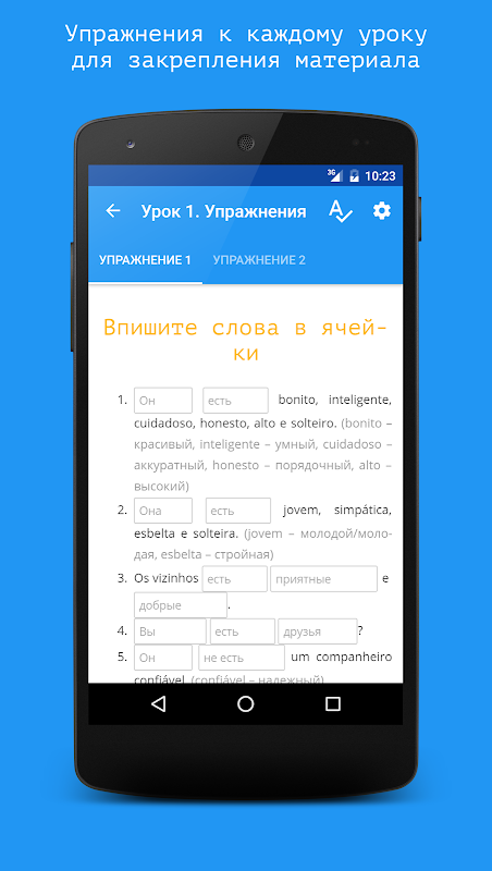 在我们的练习中,您需要在单元格中输入单词或短语的翻译。然后通过听它的配音来翻译整个句子。您可以随时查看答案。 80% 的单词要么是在课程理论中,要么是在之前的练习中,因此完全没有必要为每个单词查字典。当您独立构建短语和句子时,单词的记忆发生在实践中。