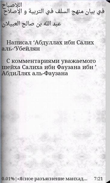 我看了看消息,这就是所谓的“解释清楚manhaj正义的前辈们在教育和改正的问题。”它的作者是谢赫阿卜杜拉·本·萨利赫基地'Ubeylyan。我发现,这本书是非常有价值和有用的信息的基础上,古兰经,圣训和知识拥有者的话。我相信,此消息需要传教士,教师,而且,在一般情况下,所有的穆斯林。愿真主赏赐他好,让他写的东西是有用的。“