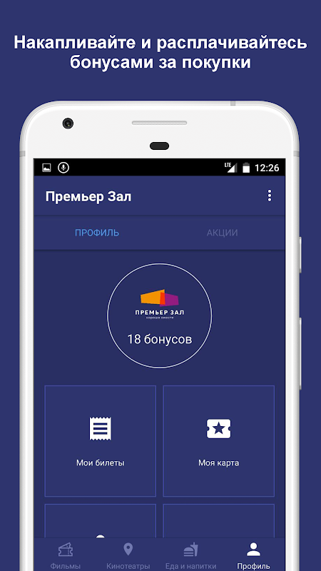 С приложением "Премьер Зал" вы сможете приобретать билеты на любые сеансы. Цены на билеты ниже чем в кассе кинотеатров. Вы так же можете приобрести продукцию кинобара. Для обладателей бонусной карты «Клуба друзей» действует возможность списания бонусов при покупке через приложение.