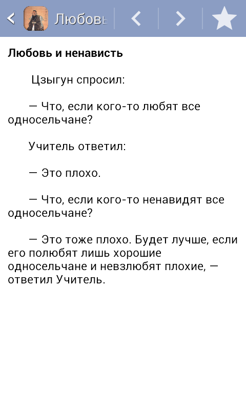 寓言 - 一个小故事承载任何教训。箴言有用重读 - 还记得那些开始忘记重要的事,但有时讲一个比喻,这是非常有用的,而且 - 通过它更容易传达的理念比任何争论。孔子 - 中国古代思想家,哲学家。他的教诲对中国和东亚的生活产生了深刻的影响,成为被称为儒家的哲学体系的基础。