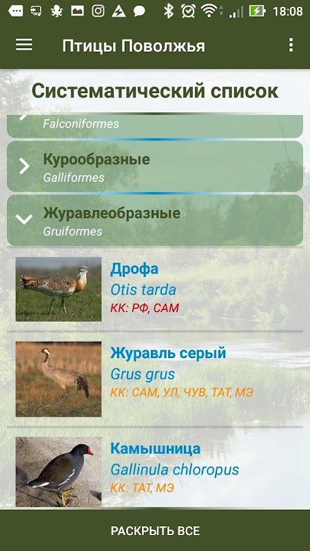 1. 该数据库包含 372 种鸟类 - 伏尔加河中部地区最完整的物种列表