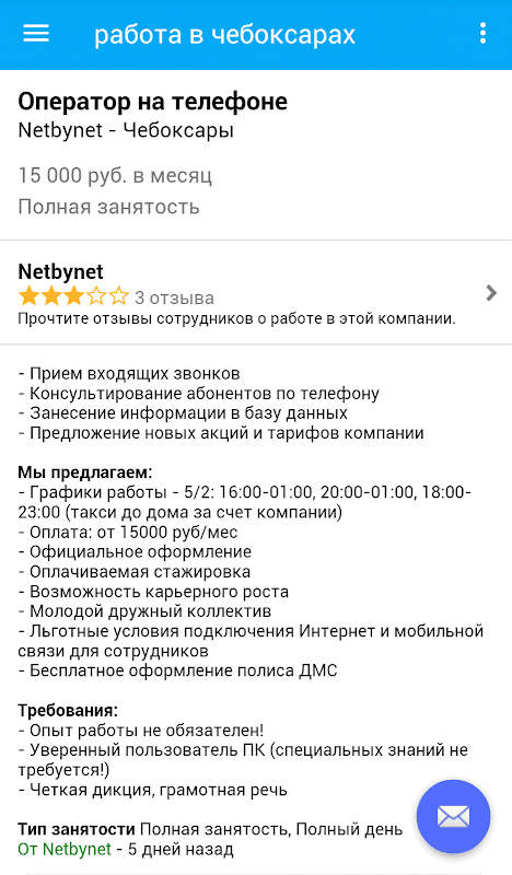 Используя портал Работа в чебоксарах, вы сможете подобрать лучшие вакансии, при этом, вы можете использовать фильтры для сортировки поисковых результатов. Наша мощная интеллектуальная система поиска работы позволяет предложить вам лучшие вакансии чебоксарах, соответствующие вашим требованиям.