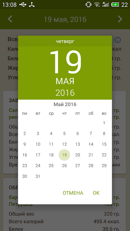 - счетчик калорий составленного меню