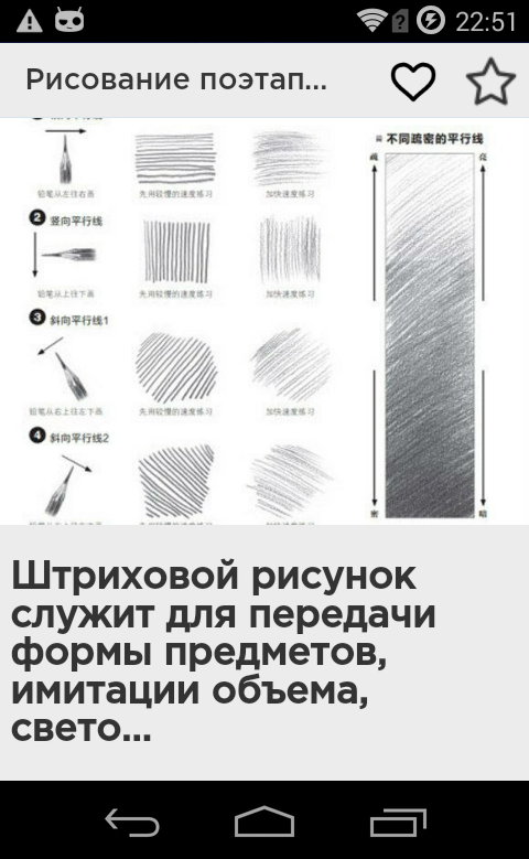 Начните рисовать с помощью приложения «Рисование поэтапно» несложные рисунки простым карандашом, постепенно переходя к изображению людей, животных, пейзажей. Когда освоите технику рисования карандашом, можно будет перейти к рисункам красками.