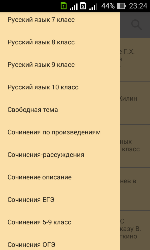 В приложение для удобства поиска мы разбили сочинения по классам: