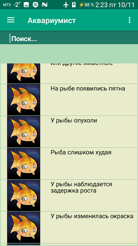 该指南介绍了300多种观赏鱼和可能的疾病。此外,应用程序描述了许多水生植物和其他居民的物种:软体动物(蜗牛和叶子)和节肢动物(蟹和虾)。