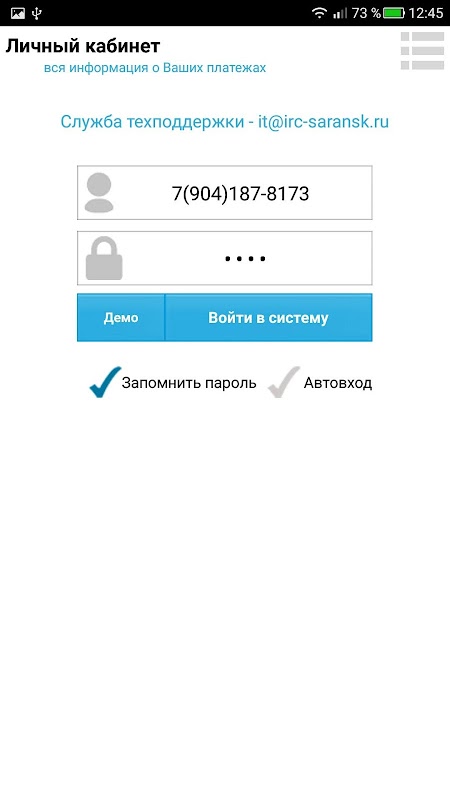 该应用程序允许的区域访问的LLC个人账户的居民“萨兰斯克结算中心。”