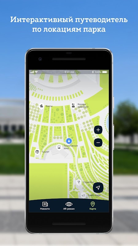 Воспользуйтесь навигацией по парку и стадиону, с детальной информацией о всех интересных местах.