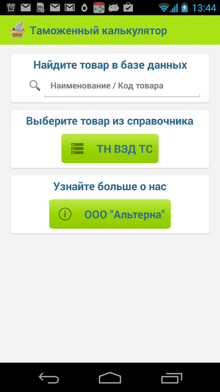 Приложение «Таможенный калькулятор товаров» разработано специалистами компании «Альтерна», которая предоставляет полный комплекс услуг в области внешнеэкономической деятельности – от доставки грузов любой категории до их таможенного оформления.