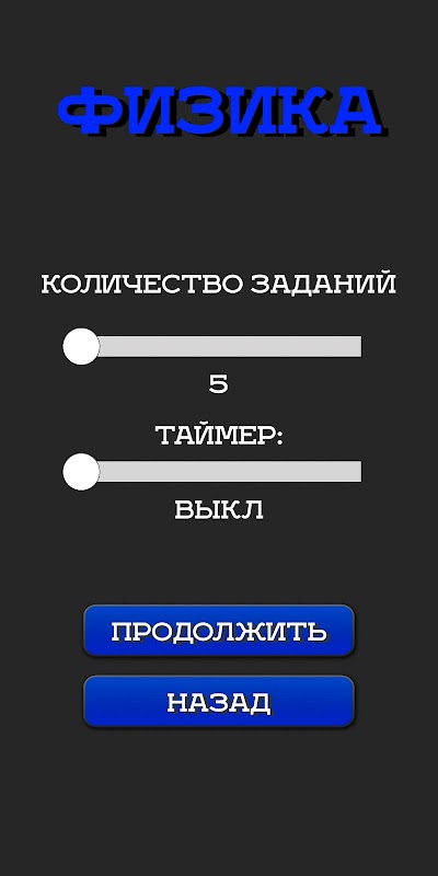 • Добавил возможность регулировки таймера и количества заданий в виде ползунка • Добавил новый режим тестирования • Убрал зимнюю тему • Устранил баги и недочёты