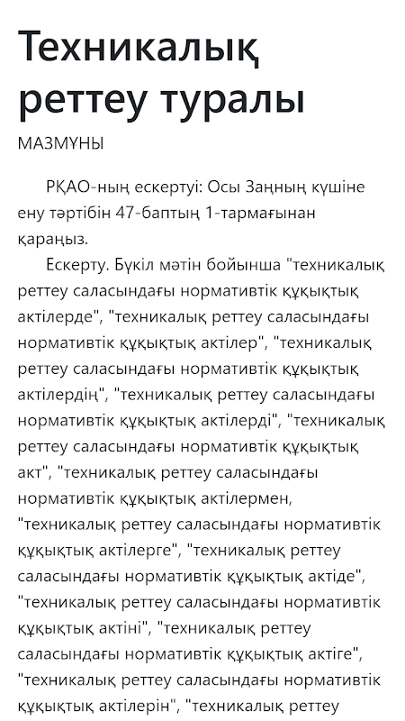 Осы Заң Қазақстан Республикасында өнiмнiң, көрсетiлетiн қызметтердiң және процестердiң қауiпсiздiгiн қамтамасыз етуге бағытталған мемлекеттік техникалық реттеу жүйесiнiң құқықтық негiздерiн белгiлейді.
