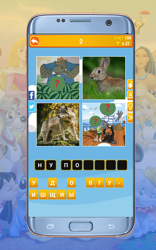 Правила очень просты: По 4 картинкам (фоткам) нужно отгадать Русский, Советский или Диснеевский мультфильм, фильм или аниме. Посмотрите на картинки – проведите аналогию и угадайте слово. Если вы застряли на каком-то уровне – не беда, используйте подсказки "Удалить ненужные буквы", "Вставить правильную букву", "Пропустить уровень" или "Показать слово".