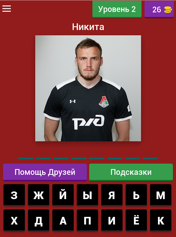 规则尽可能简单:你需要从图片中猜出玩家的姓氏。看看图片 - 画出一个类比并猜出足球运动员的名字。如果您遇到某种程度的卡 - 请不要担心,请使用“删除不必要的字母”,“插入正确的字母”或“跳过级别”提示。