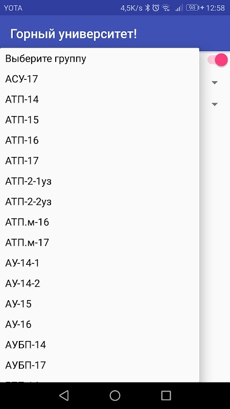 Приложение с расписанием занятий Уральского Государственного Горного Университета.