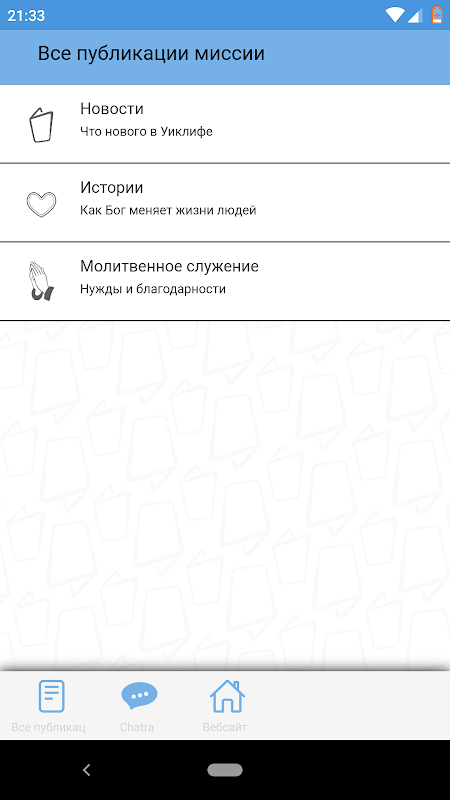 Мы решили объединить в одном приложении все публикации миссии. С ним вы сможете оставаться в курсе событий, вдохновляться историями "с полей" и молиться за миссионерское служение в других народах.