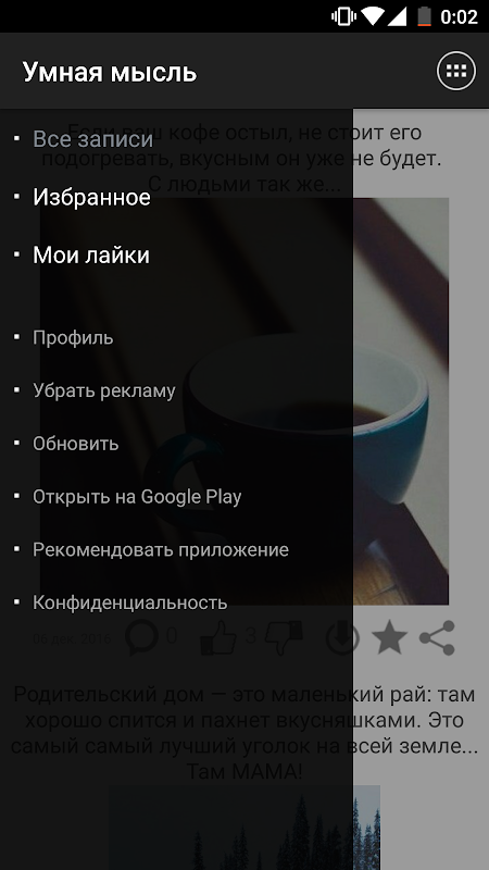 Понравившиеся записи можно комментировать и оценивать. Все понравившиеся картинки можно сохранять в галерее устройства в папке приложения. Ты можешь делиться записями с друзьями через социальные сети, а так же другие установленные на устройстве приложения. Ну и конечно, ты можешь оставлять лайки и сохранять записи в избранное.