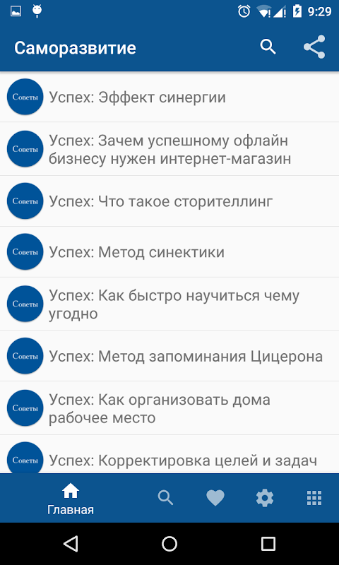 В этом приложении собраны лучшие материалы: Успех, Истории успеха, Саморазвитие, Карьера, Здоровье, Финансы, Образование и обучение, Сила мысли, Психология, Афоризмы. Из приложения вы узнаете о саморазвитии, личностном росте, таланте.