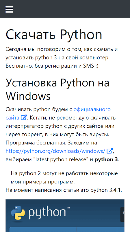 Самоучитель Python 3. Предназначен для тех, кто хочет изучить язык программирования Python с нуля.