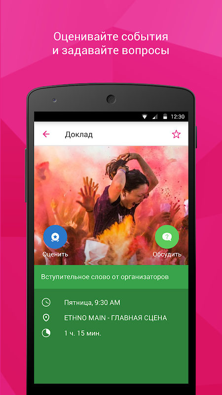 - составить собственную программу и получать оповещения о начале избранных докладов;
