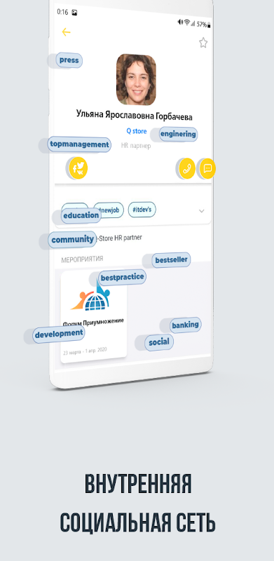 • Получать PUSH уведомления для участия в мероприятиях;