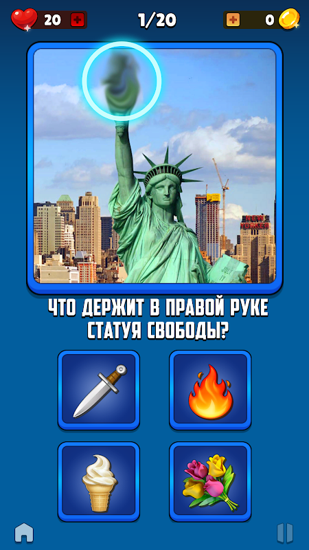 游戏规则:你有 20 条生命。对于每个错误的答案 - 减去一条生命。对于每个保存的答案 - 一枚金币。解锁关卡需要硬币。