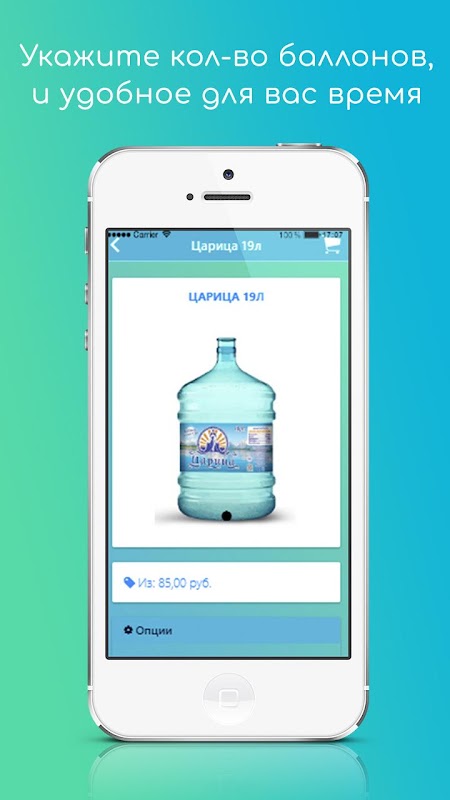 Вы просто устанавливаете приложение "Царица - доставка воды", выбираете товар.