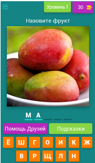 ★ Система подсказок. Не можете вспомнить название фрукта или просто не знаете, что изображено на картинке? Тогда Вам прямой путь к встроенным подсказкам. Они помогут пройти эту обучающую викторину до самого конца.