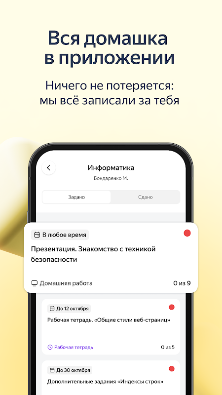 5-11 年级计算机科学。智能手机上的家庭作业。 Yandex 活动