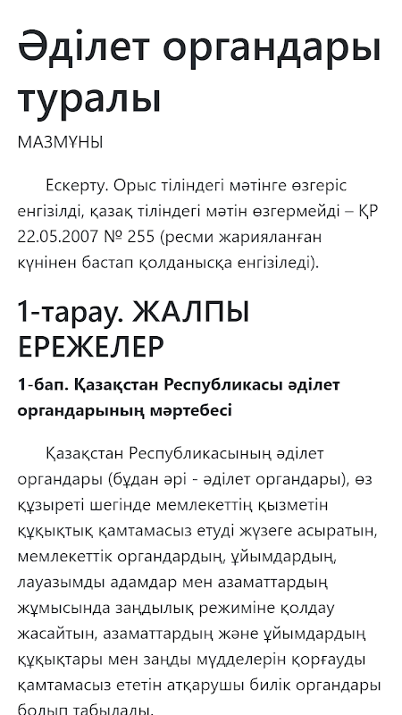 Қазақстан Республикасының әдiлет органдары (бұдан әрi - әдiлет органдары), өз құзыретi шегiнде мемлекеттiң қызметiн құқықтық қамтамасыз етудi жүзеге асыратын, мемлекеттiк органдардың, ұйымдардың, лауазымды адамдар мен азаматтардың жұмысында заңдылық режимiне қолдау жасайтын, азаматтардың және ұйымдардың құқықтары мен заңды мүдделерiн қорғауды қамтамасыз ететiн атқарушы билiк органдары болып табылады.