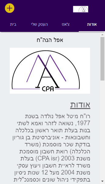 该公司由Apple Meital于2004年成立,为企业提供会计,簿记以及业务和财务支持服务,除其他业务外,在企业所有者的个人支持下建立和运营公司。 Apple Meital专门提供金融业务支持,包括在各种当局的协助下以及为企业和家庭提供多样化的解决方案。
