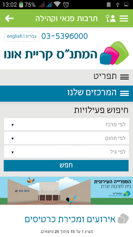 - חיבור לאתר העיר קרית אונו ועמוד פייסבוק של העיר.