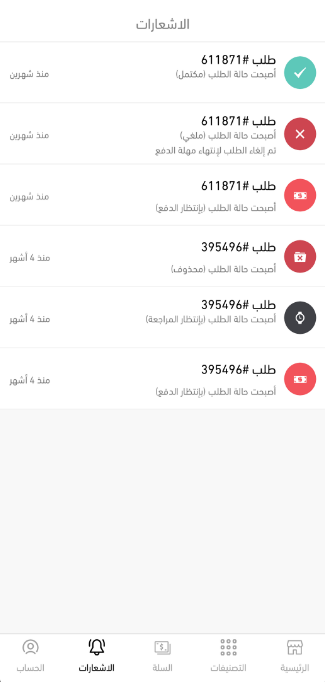 - إمكانية الإطلاع على تاريخ الإشعارات المرسلة لتتبع حالة الطلب.