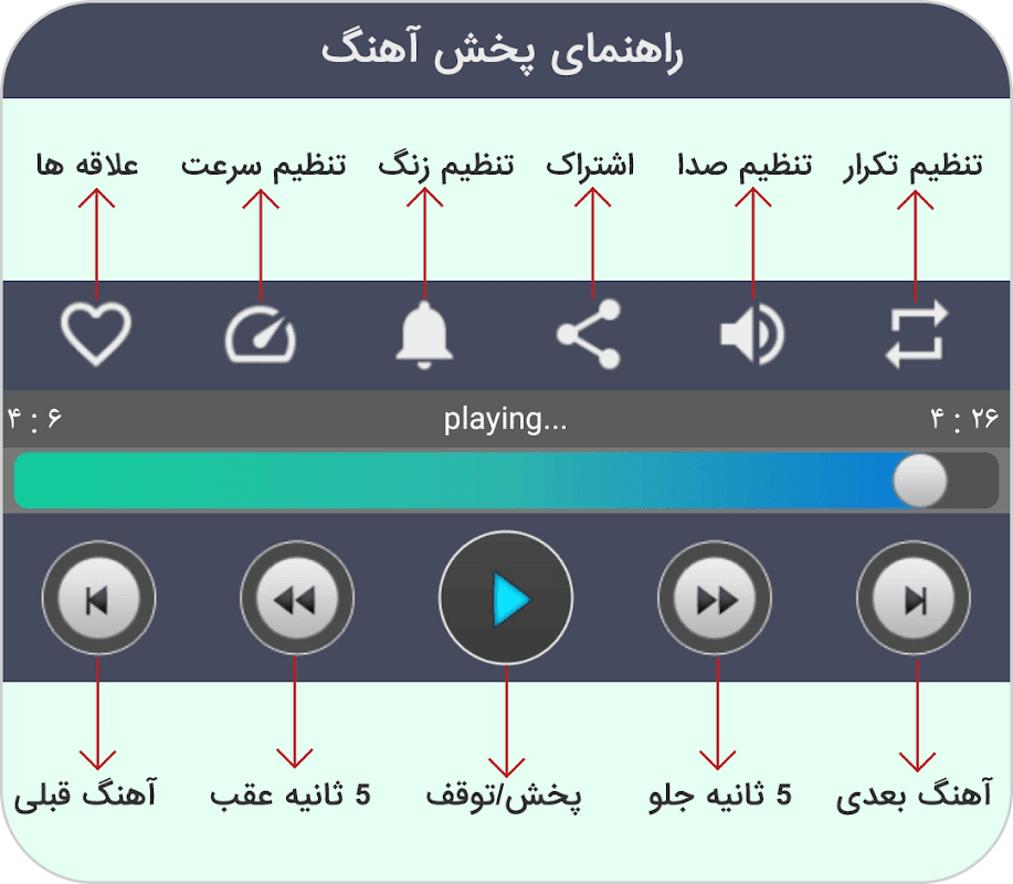 - 拥有专业播放器,可以调整重复,暂停或完成歌曲,向前或向后移动歌曲,转到上一首和下一首歌曲
