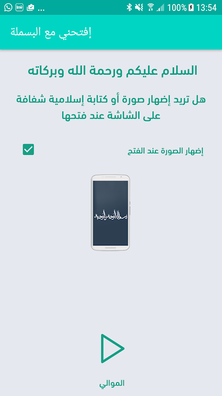 背诵Basmalah或Adhar写作basmalah当你打开手机