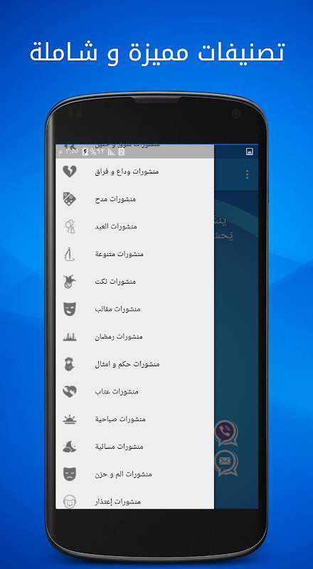 و كلمات راقت لي و كما منشورات حب و غرام و حلات للواتس و شعر و خواطر و العيديد من المنشورات و البستات الجديدة و علمتني الحياة و حالات فيس و منشورات مزخرفة تميع في استخدام التطبيق اكثر من 25 تصنيف و اكثر من 10000 منشور و سهولة المشاركة لا تنسى تقيم التطبيق و لو كان في بالك شيء علق لتحسين جدودة التطبيق