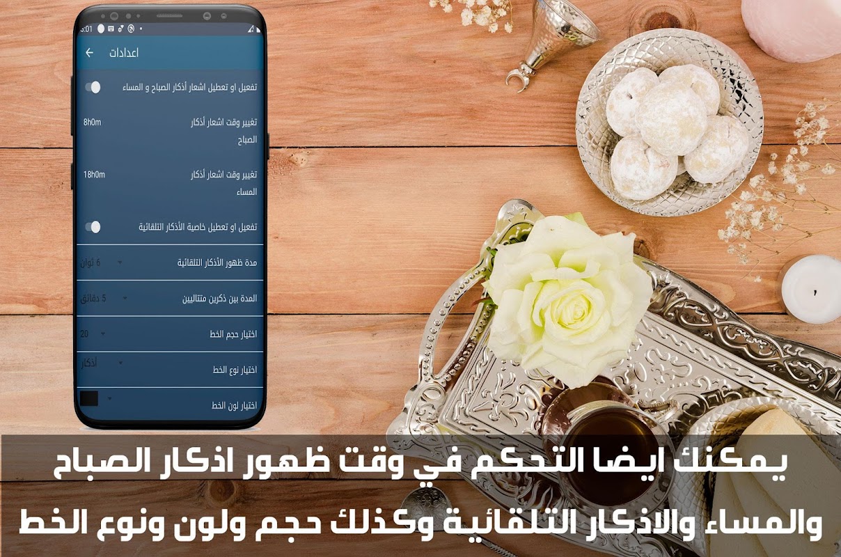 您还可以通过在电话屏幕上显示一组dhikr来应用早上和晚上dhikr,您可以通过选择出现的时间以及选择两个连续的内存出现之间的时间以及大小,颜色,字体类型和许多其他功能来进行控制。