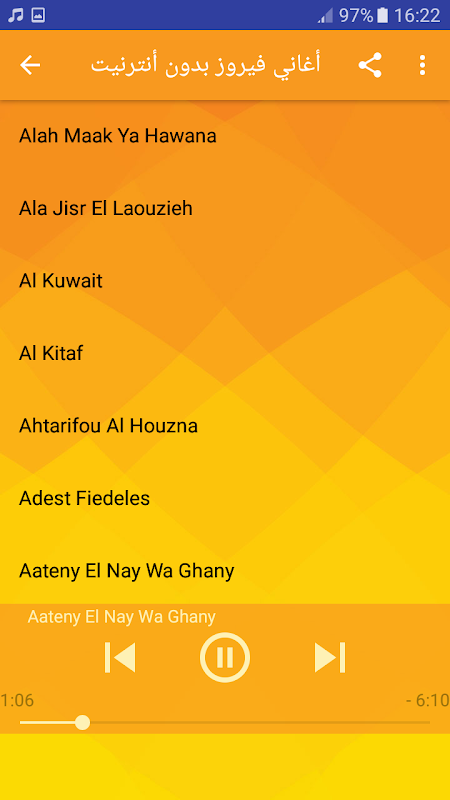 التطبيق به اجمل اغاني فيروز بدون انترنت
