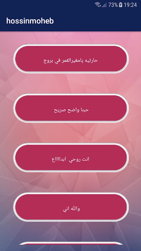 تطبيق اغاني حسين محب بدون نت يحتوي على جميع اغاني منية مشهورة وهي الاكثر استماعاً لعام ٢٠١٩