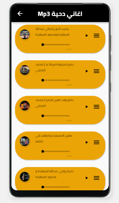 这些歌曲有很多不同的类别,包括流行的,包括浪漫的、爱国的、悲伤的,以及成功的歌曲、婚礼歌曲等等。没有网络的 Dihya 歌曲应用程序为我们提供了我们想要的质量的歌曲想听我们喜欢的歌曲,只需按下播放键就可以听到你喜欢的歌曲,然后你就可以在没有网络的情况下在Dihyah歌曲应用程序中听到你喜欢听的歌曲。这些歌曲在我们自己身上有一个特殊的角色当我们听到它们时,就像我们喜欢反复听一首歌,如果我们觉得它改变了我们的感受,没有人喜欢这样,这就是没有网络的 Dihya 歌曲应用程序为我们提供的,它的设计简单易行舒适的使用方式,让您可以听到自己在唱什么。立即下载 Dihyah 歌曲应用程序,无需网络,享受最美妙的歌曲