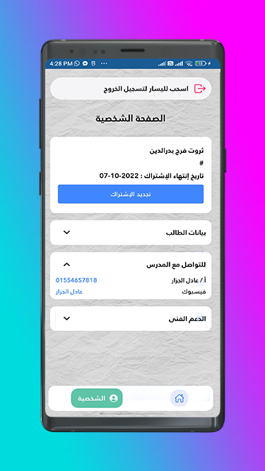 Al-Jazzar教育应用程序是一款跟踪Adel Al-Gazzar先生的学生的应用程序