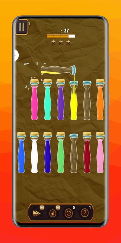 这些水瓶游戏的一个有趣规则是,您可以将相同颜色的液体倒在上面,并且您倒的管子里面有足够的空间。因此,在这种 3D 水彩画中用您的 IQ 填充杯子时要小心。接受具有挑战性的分类游戏并解决瓶子益智游戏。