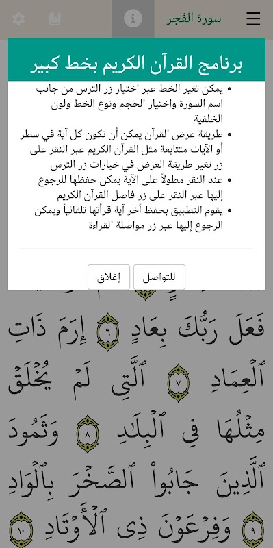 Noble Qur'an 的应用使用户能够将字体类型和大小更改为非常大的大小,这使读者更容易理解。