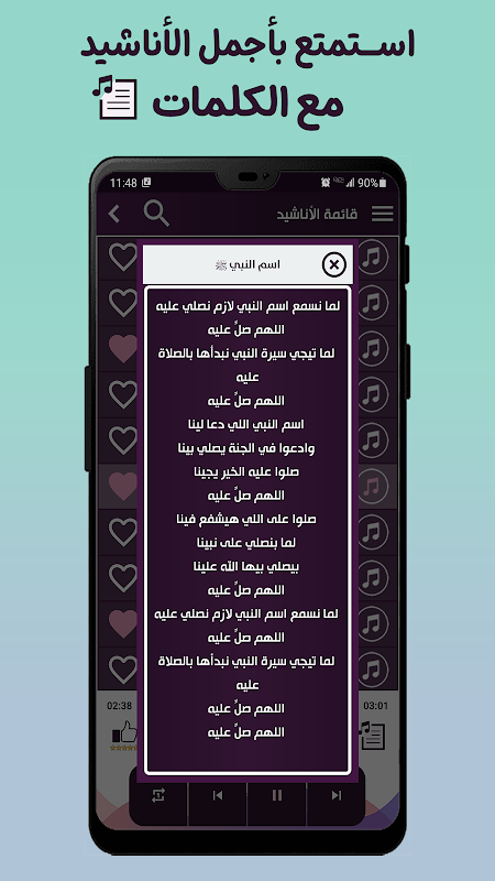 ✔ الاستماع الى الاناشيد مع إمكانية عرض كلمات