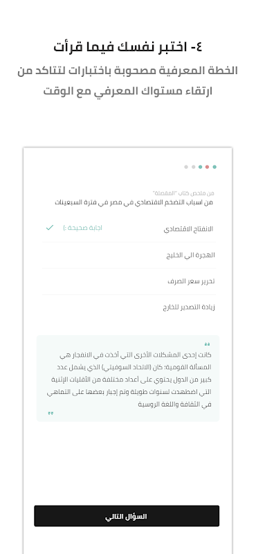 通过认知计划对最重要的阿拉伯书籍的思想进行总结来进行自我教育,该计划是根据您对各个知识领域的兴趣而精心准备的,并且随着您水平的提高而发展,在您阅读我的课程后,我将进行测试以确定您当前的知识水平并确保您的知识水平随着时间的推移而发展。我们的目标是成为一个受过高等教育的人,对自己更有信心,并获得他人的信任。